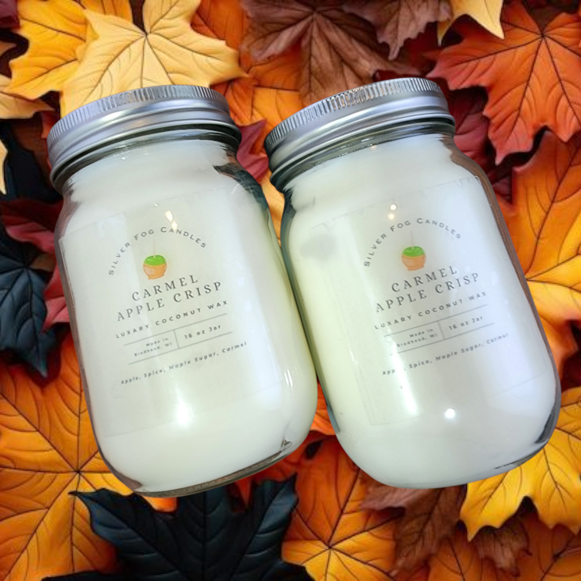 16 oz Mason Jar Candle ~ Carmel Apple Crisp
